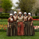 Since its inception, the Tulip Festival’s much beloved Queen and Court have been a prominent fixture in our festivities.  The first Queen was crowned in 1937. Except for the war years of 1942-1946, a Queen and her Court have reigned each festival.  Presently, five high school seniors are selected by the public each September and a pageant is held each November to crown the Queen. A panel of judges is assisted by the public in selecting a Queen.